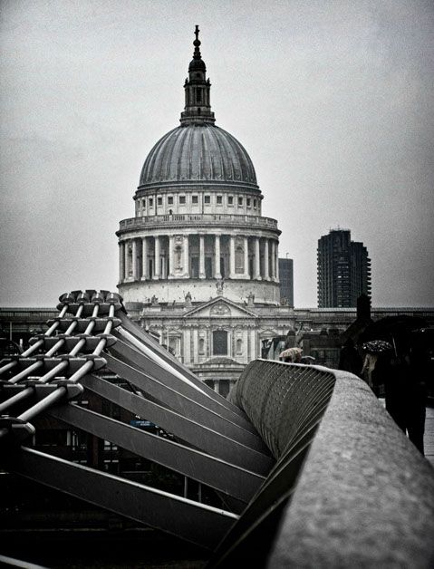 St Paul's Cathedral from the Millenium bridge, London. In the rain ....