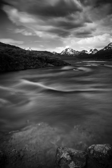 Lamar River flowing northwards. The river was already flowing strongly despite the fact that the spring melt had only just begun after a long, hard winter.