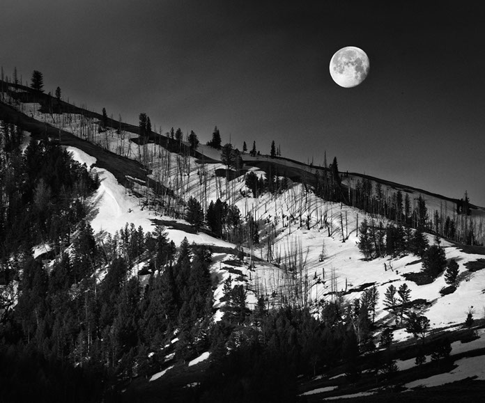 The moon setting over the eastern hills of the Lamar Valley, Wyoming.