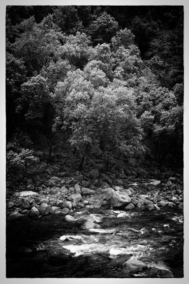 Evening light strikes a tree by the side of the Merced River, El Portal, CA.